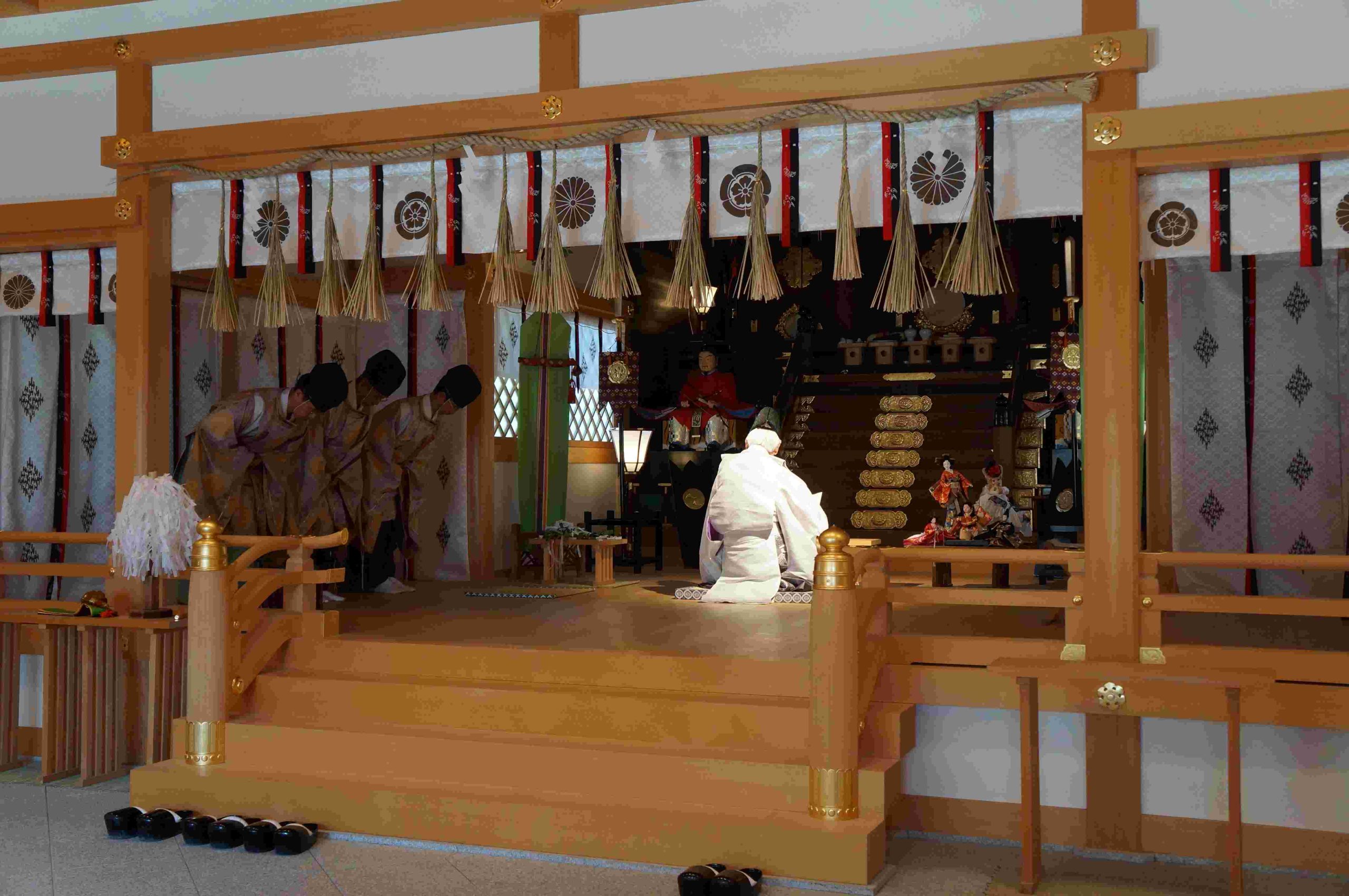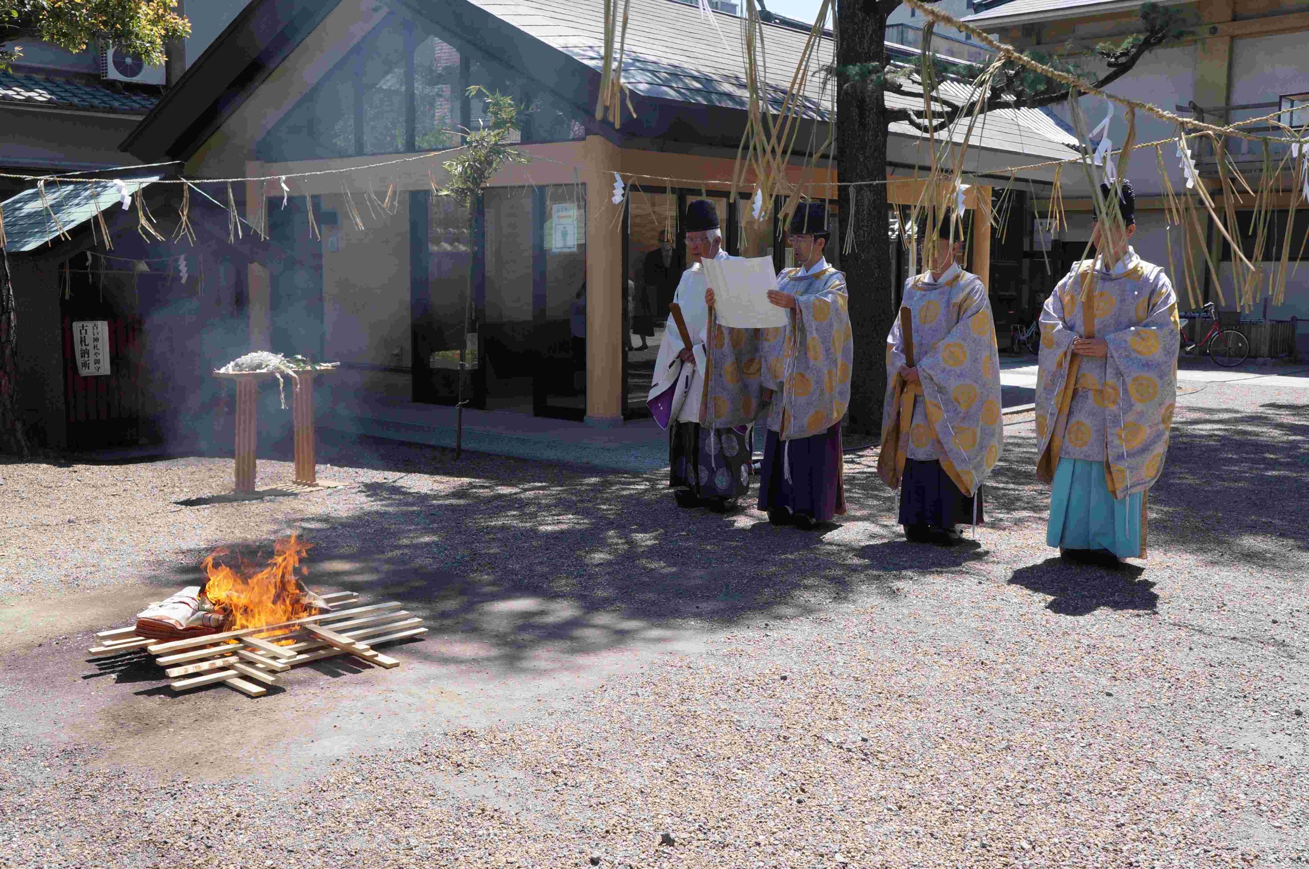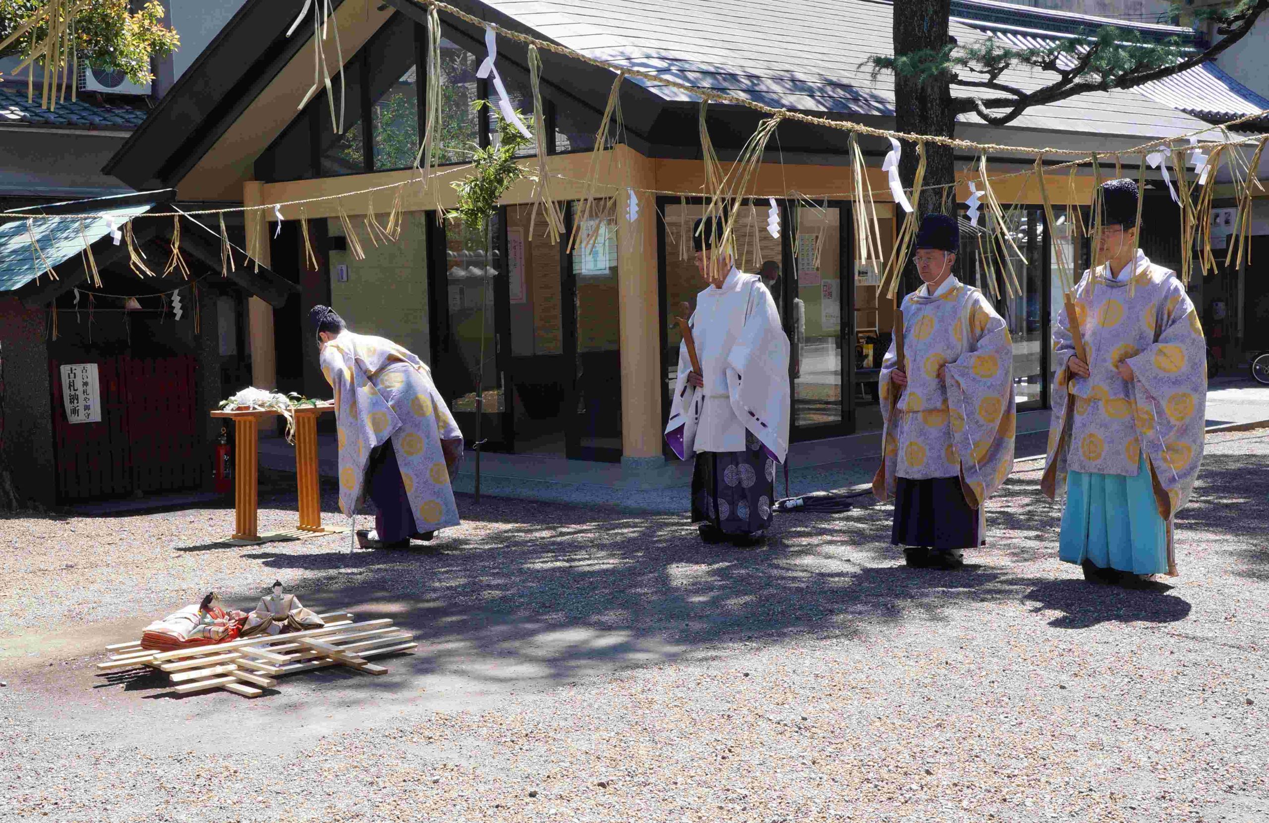 この度、皆様にお納めいただきました「人形」は、去る4月8日午前11時より古例の通り「人形奉焼祭」を斎行の上、斎庭において清祓・奉焼致しましたことをご報告申し上げます。