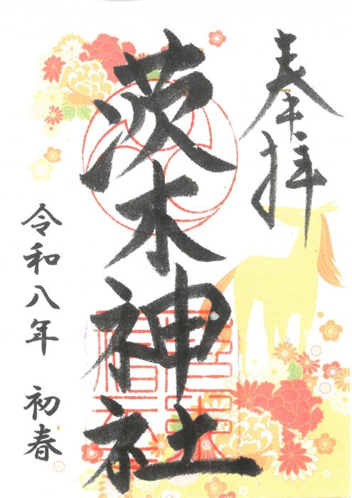 令和8年新年特別御朱印を頒布いたします。新年にふさわしく、美しい花々に囲まれながら未来を見据える午を中心に奉製いたしました。