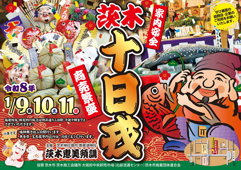 令和8年の茨木十日戎は、下記のように実施いたします。皆様、お誘い合わせの上お越し下さい。